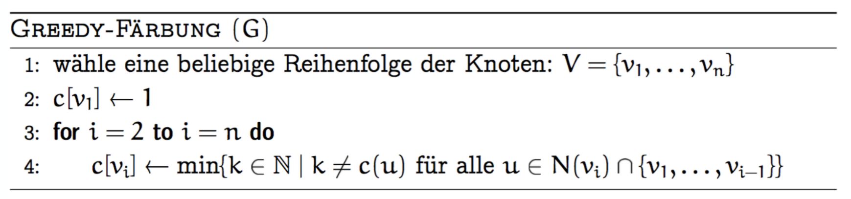 Gilt für die (gewählte) Reihenfolge \(|N(v_i) \cap \{v_1, \ldots, v_{i-1}\}| \leq k\) \(\forall\, 2 \leq i \leq n\), dann benötigt der Greedy-Algorithmus höchstens \(k+1\) viele Farben.