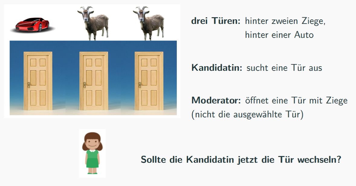 | Extra | Satz von der totalen Wahrscheinlichkeit<br><br><b>Beispiel: Ziegenproblem</b><br><img src="paste-fe1bd74214a82f2008614d31f66a80c281f1f024.jpg"> |