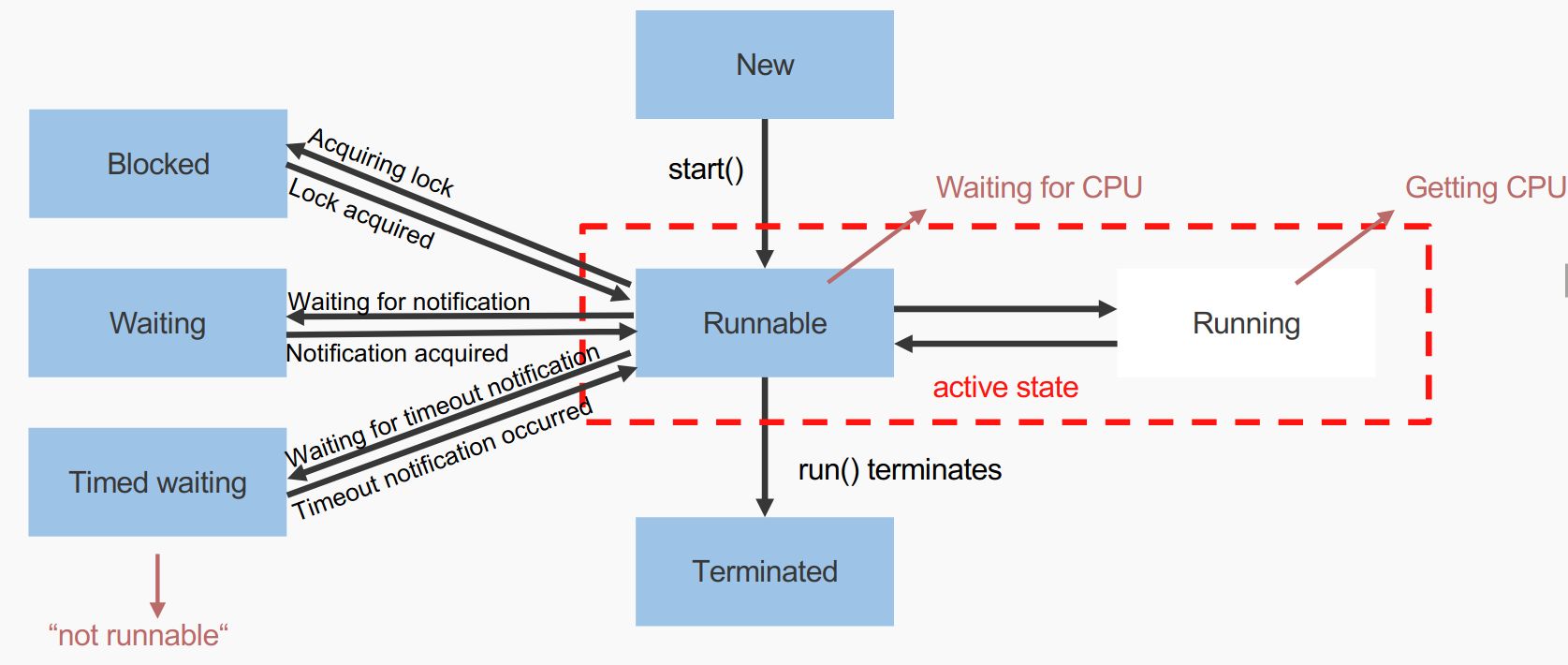 | Text | When calling wait() in a thread, it's state becomes {{c1:: <b>NOT RUNNABLE</b>}} until it's woken up again. | |