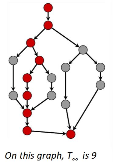 \(T_\infty\) in DAG: span, critical path length =Longest chain of dependent operations in the DAG