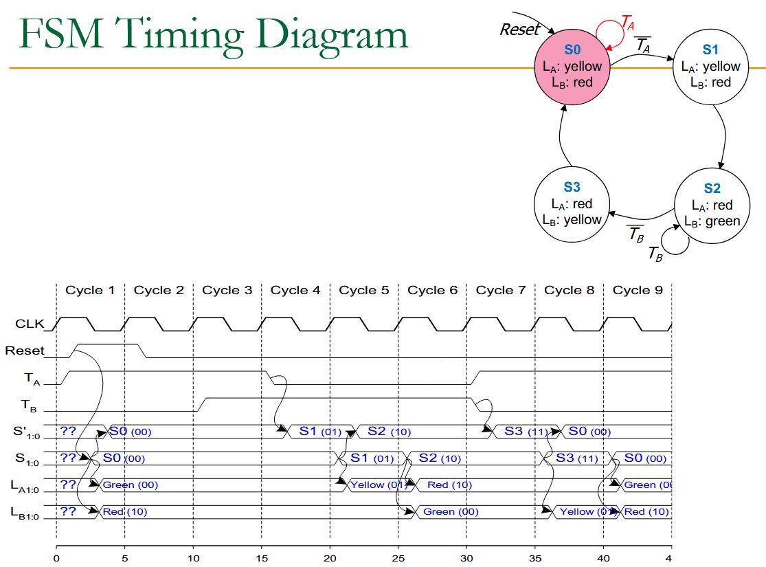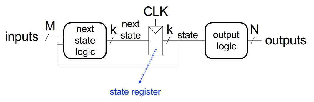 | Extra | <img src="paste-f282a35cb1ef5e0d4f8f098548b2bdb621bdf0da.jpg"><br><br>At the beginning of the clock cycle, next state is latched into the state register |