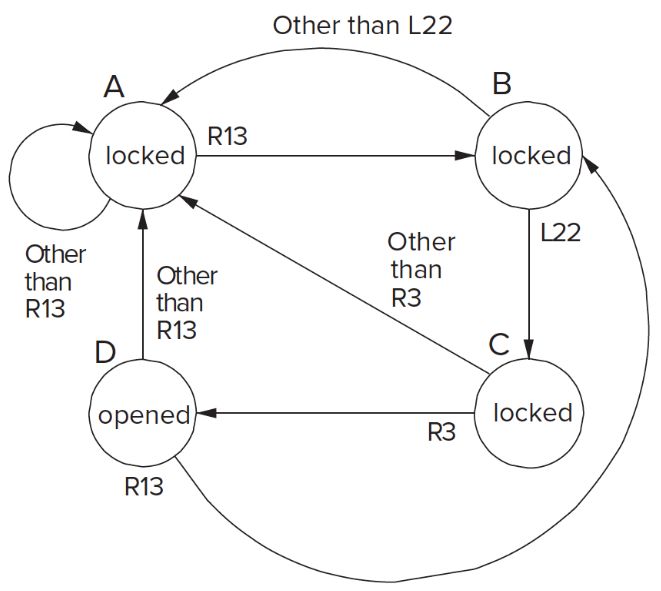 | Back | State diagram of a sequential lock. |