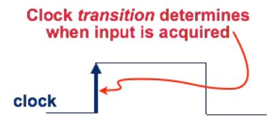 | Extra | State transitions take place at fixed units of time (i.e., potentially delayed response to input, synchronized to an external signal).<br><br>Controlled in part by a clock, as we will see soon. |