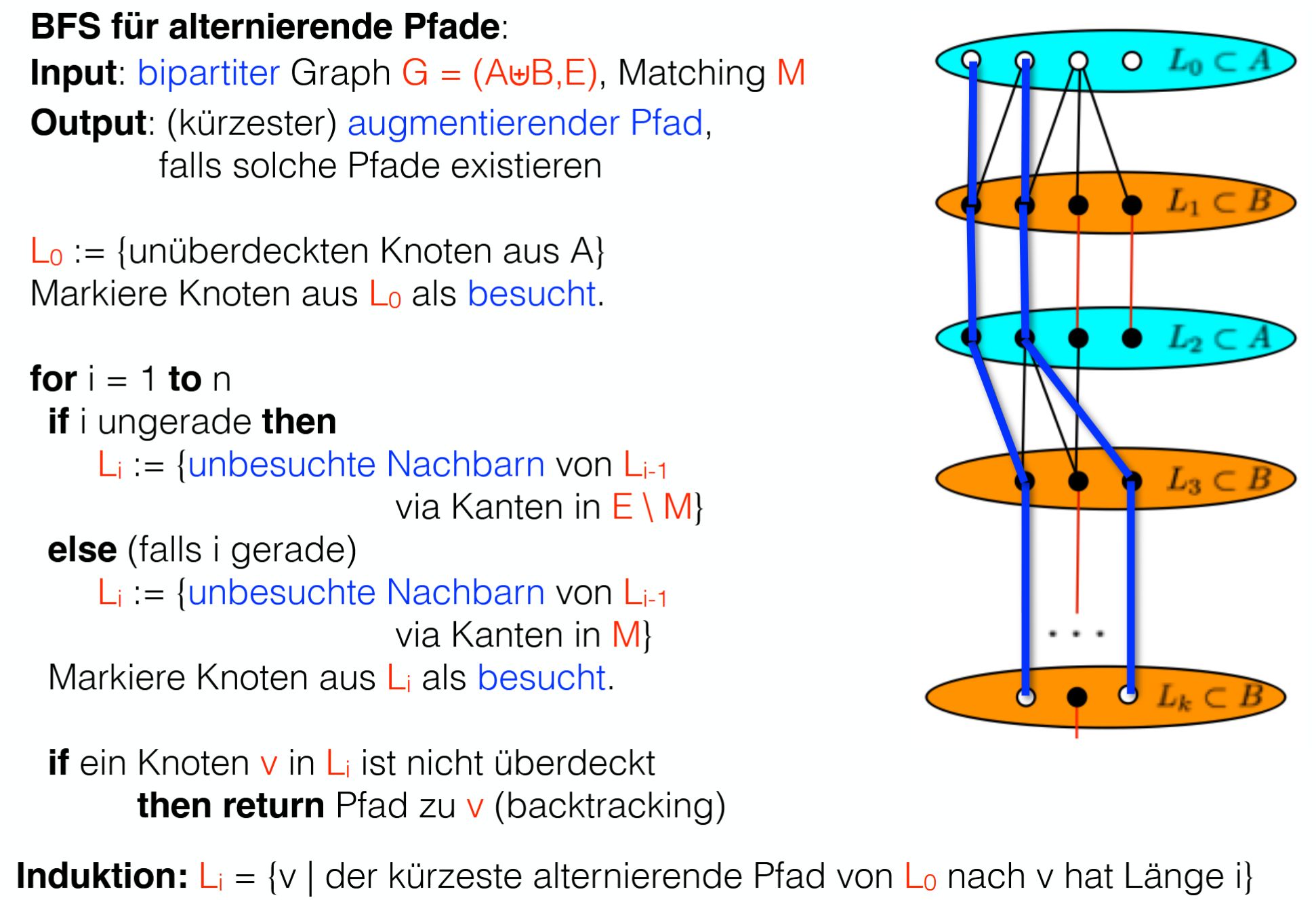 | Extra | „Ist G bipartit?" kann man in Zeit \(O(|E|)\) mit Breiten- oder Tiefensuche beantworten. |