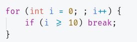 | Text | We can omit everything but {{c1::the semicolons}} in the for loop <b>for(...)</b> |