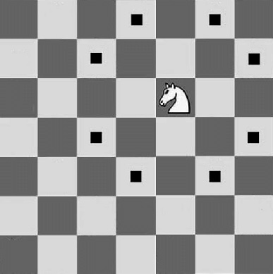 | Front | Wahr oder falsch?<br><br>Es gibt einen Hamiltonkreis für einen Schachspringer, der auf einem \( 7 \times 7 \) Schachbrett springt.<br><br>Zur Erinnerung: Nachfolgend sind die zulässigen Springerzüge im Schach aufgeführt.<br><br><img src="chess-knight-f34af295c542ba40bd2c48b90228d92a094d3974.jpg"> | |